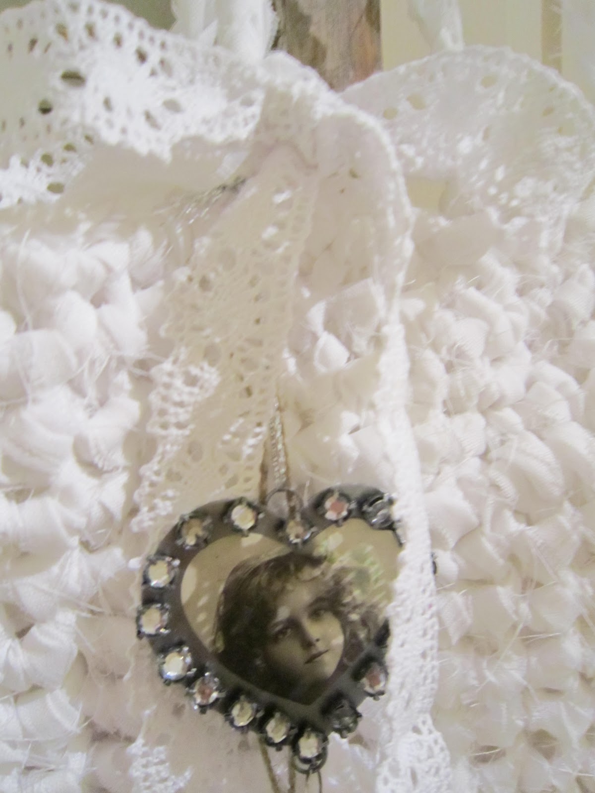 Klippet remser av noe stoff jeg hadde liggende, men det egnet seg ikke så veldig, for det rufset veldig opp. Skal hekle ei ny av bommullstoff etter hvert.
